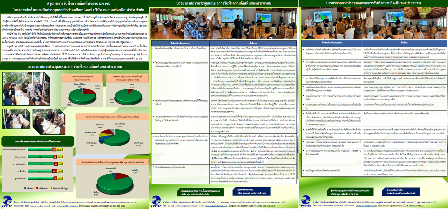 ข่าวสาร: สรุปผลการรับฟังความคิดเห็นจากประชาชน โครงการจัดตั้งสนามบินส่วนบุคคลสำหรับเฮลิคอปเตอร์ บริษัท สมุย ออร์แกนิก ฟาร์ม จำกัด